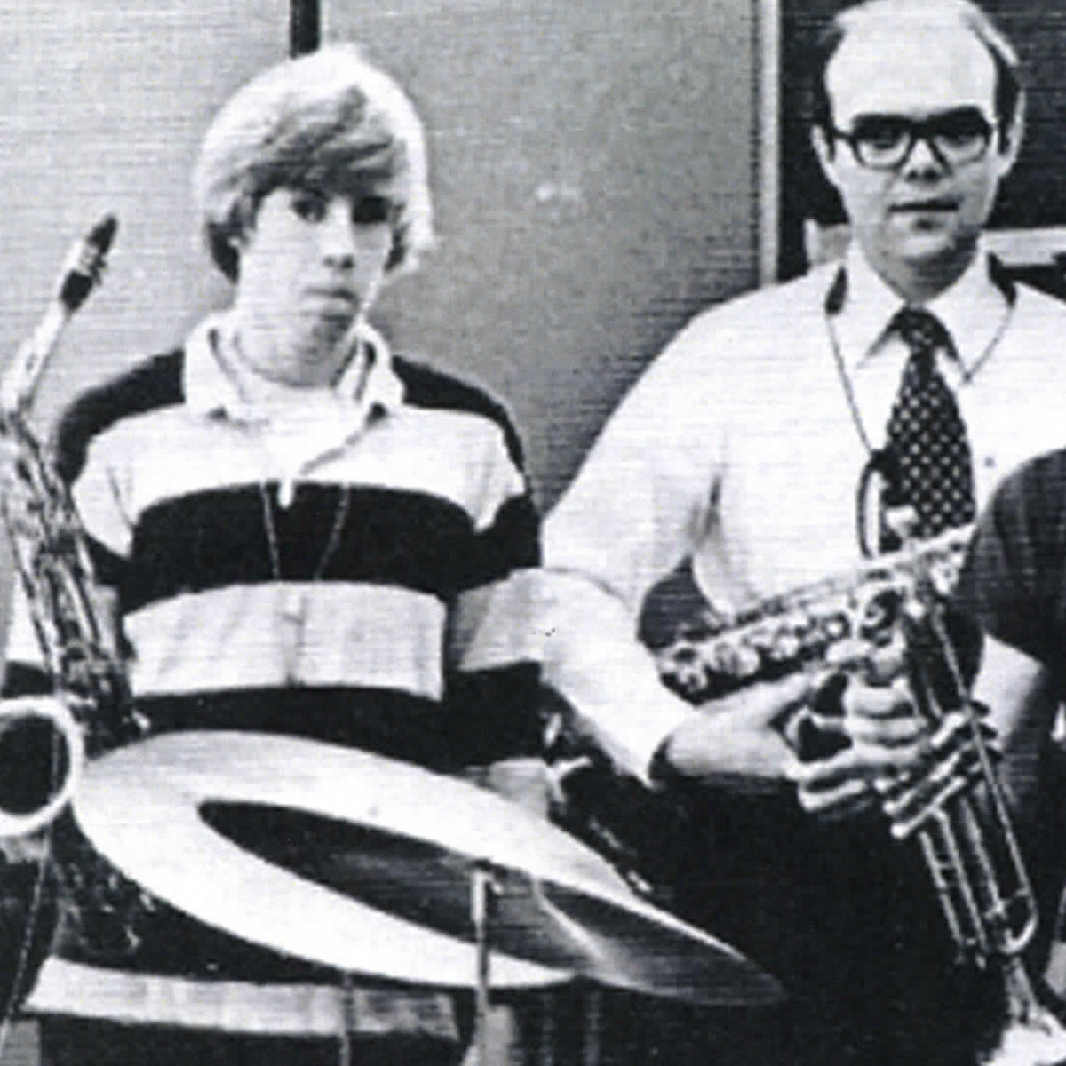 Chris and his PHS music teacher Alan Harvey, 1976.